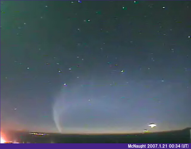 21 Jan 2007: Kaoru Kimura, HOU TRA from Tokyo reports now we can see comet McNaught in the southern hemisphere after sunset. The i-Can project team has a web cam (constellation camera called i-CAN) in Chile. Everyone can access our website and watch setting comet McNaught. I did image capture and made web page.